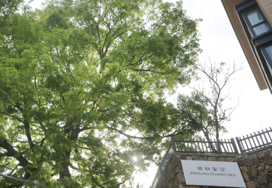 寨寮星空门口,是一棵有数百年树龄的榉树,正值新叶覆满,枝繁叶茂,一片阴凉。